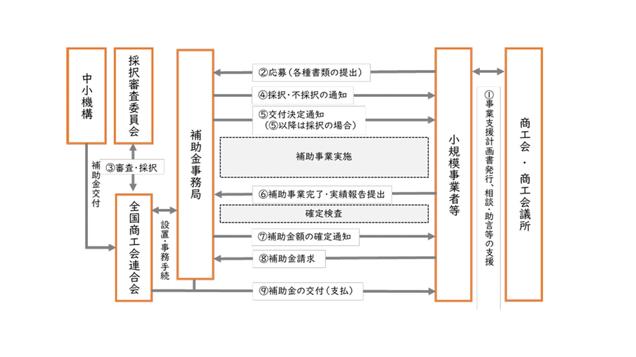 ポイント:①のとおり、本人が商工会議所に出向いて、各計画書の確認を受けるとともに、事業支援計画書の作成を依頼します。